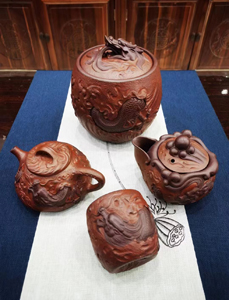 个人壶艺风格,古朴灵性,形意飘逸;陶艺摆件,做工精致,手法独到,造型逼真可爱。深受海内外众多收藏爱好家的喜爱和收藏。