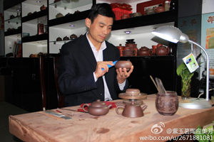 千年古陶都,钟灵毓秀,人才辈出,诞生能工巧匠无数,在璀璨的陶文化长河中闪烁,荫及当代。今有制陶人朱伟,丁山人,朱可心嫡传,制陶世家出生,自幼耳濡目染,受父辈耳提面命,浸淫陶艺,晨昏不辍,一发不可收拾,练就了扎实的基本功。从艺二十多年来,深入研习古代经典名作,领悟神髓,师古创新,善博众之长,以他山之石攻玉。善于观察生活中的平常细节,概括提炼,创作源自生活,高于生活的作品。他对创作有着严谨的要求,所制作品,形态朴素雅致,色泽温润。技艺纯熟,工艺精湛,细节处理完美,散发着浓厚的陶文化气息。曾多次在报刊杂志,作专题介绍,颇受陶艺界及紫砂壶爱好者的好评。其作品深受海内外收藏者的亲睐。